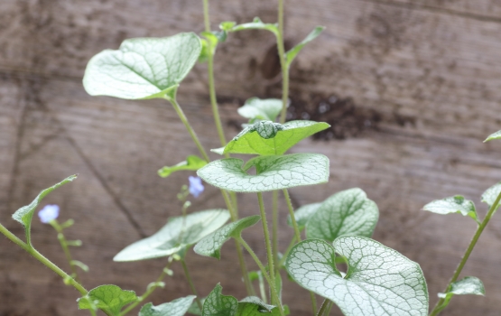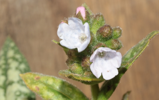 Besonderes Hellgrüne Bältter silbrig schattiert, grundständige Blüten
